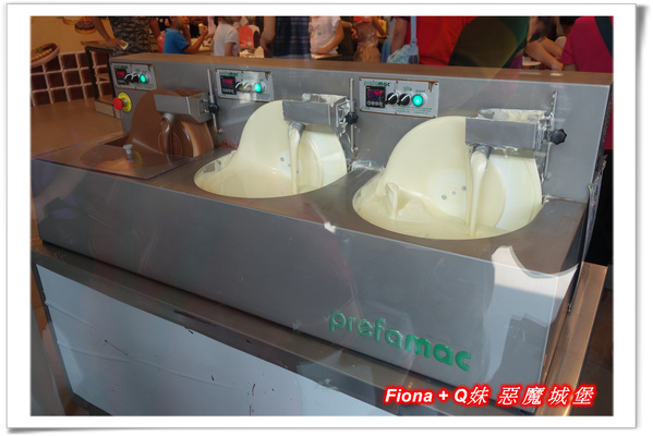 「DIY教室」前方有三管流動的巧克力,我們在等待參加活動的時候,Fiona說她看了口水直流,好像直接裝來喝,哈哈 !