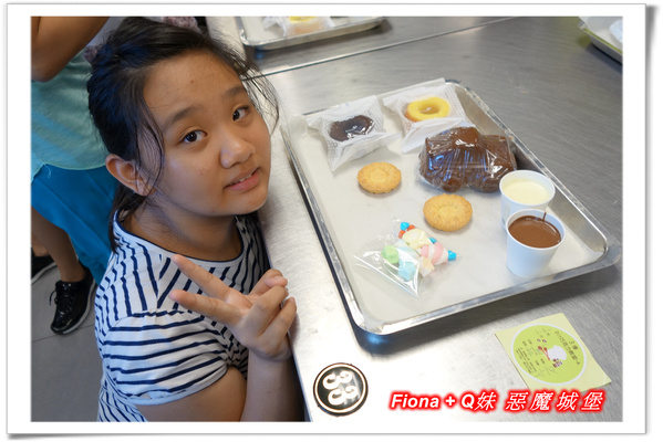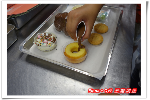 接著製作巧克力餅乾,作法其實跟巧克力甜甜圈一樣,餅乾上頭可以用製作鴨子的方式畫出圖案,不過Fiona只簡單地畫了個笑臉,哈哈 !