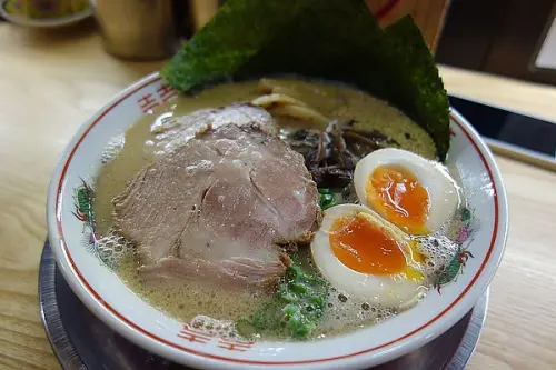 兩碗拉麵的拉麵湯頭皆同只這碗多加了豬背脂。