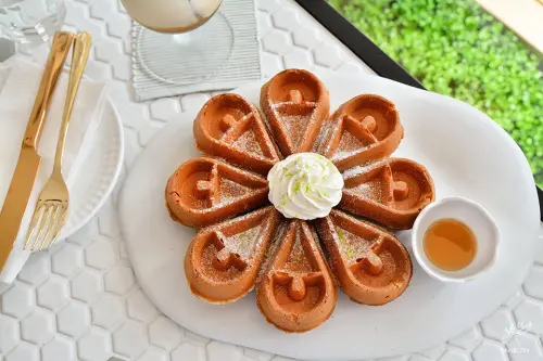 豐富的早午餐與美好的氛圍,由於此張桌位上的桌巾是白色的針織材質,我們一直怕吃的時候會不小心弄髒,所以很小心翼翼的吃著。
