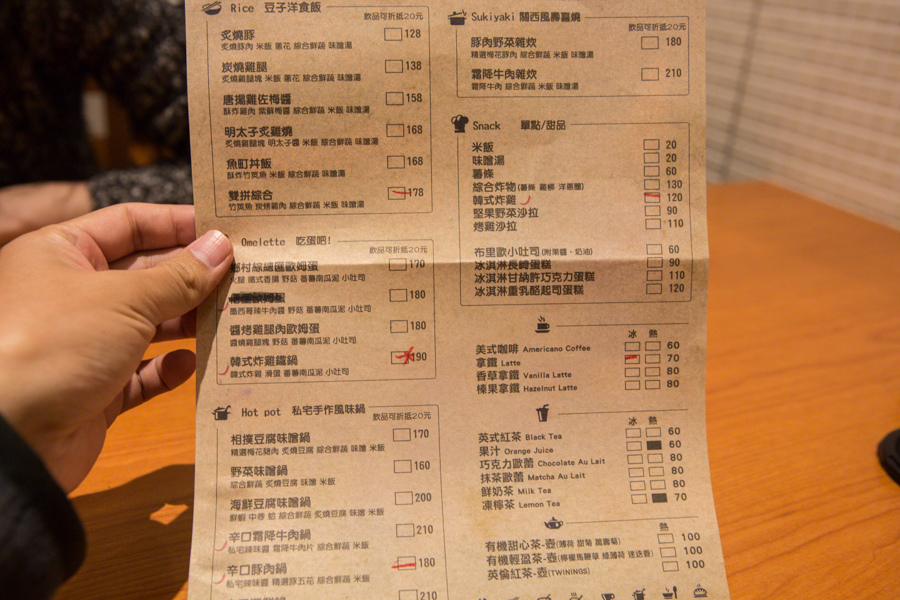 店內的餐點主要以簡餐、鍋類、壽喜燒、早午餐以及甜品飲料為主