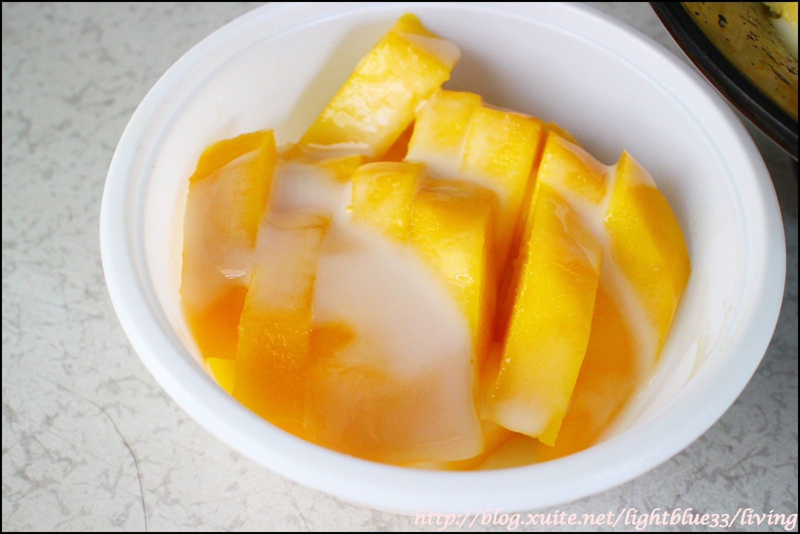 自己把芒果排一圈放在雪花冰上,這樣芒果也就可以變得冰冰涼涼了