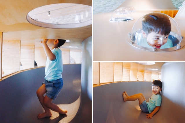 上面有透明球設計,可以看到小孩在裡頭的活動,看看以樂好休閒的躺在隧道,