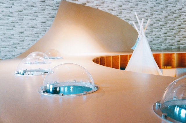 我喜歡它的立體曲線設計,從天花板到牆面延伸到地板,