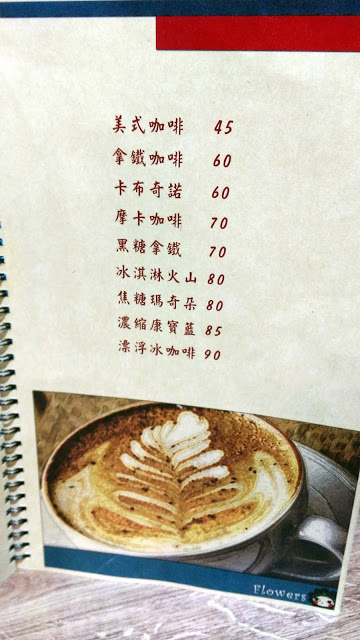 櫃檯邊黑板上有著可愛塗押並寫著各種咖啡及價格