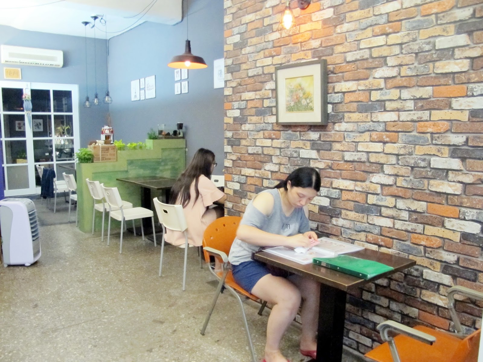騎樓間綠益怖置並擺放著桌椅當成戶外座位區
