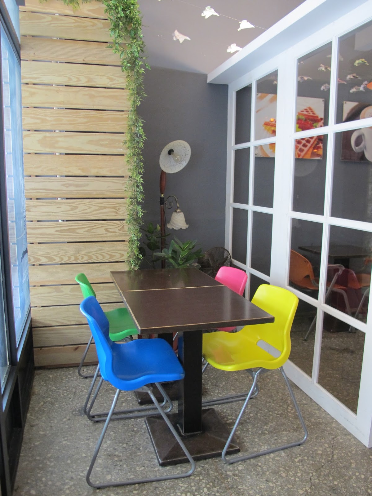 顏色亮麗的椅子讓室內座位空間多了活潑感