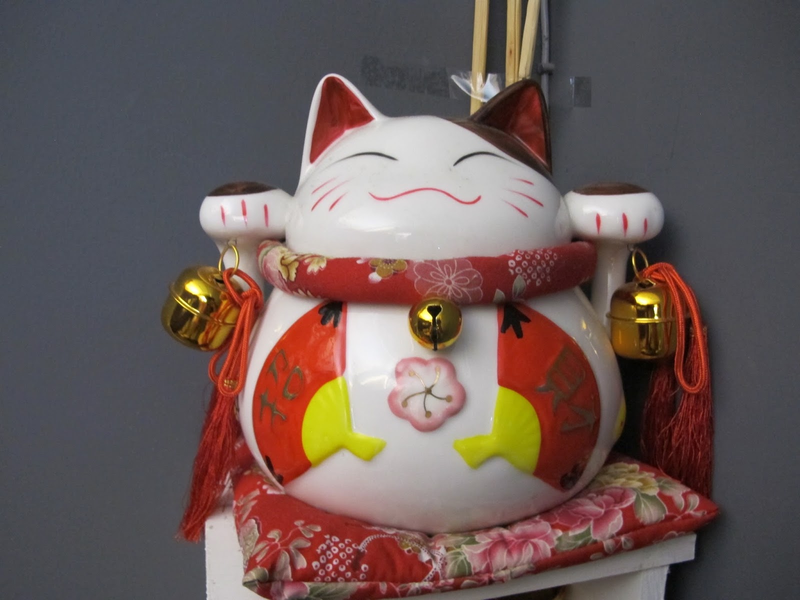 招財貓,二手都舉代表著招財、招人緣,二者兼顧,老闆好聰明 XD