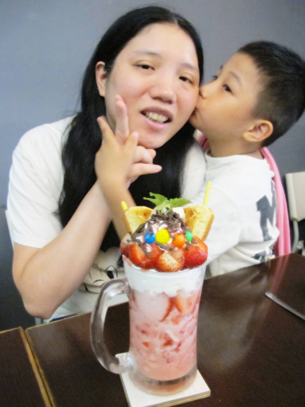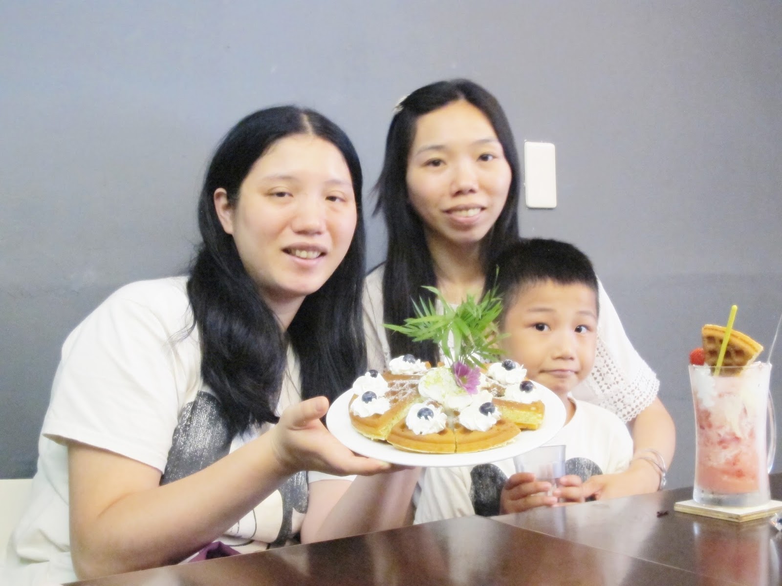 小Q表示姨你也拍太久,可以讓我吃鬆餅、喝飲料了嗎~噗哈