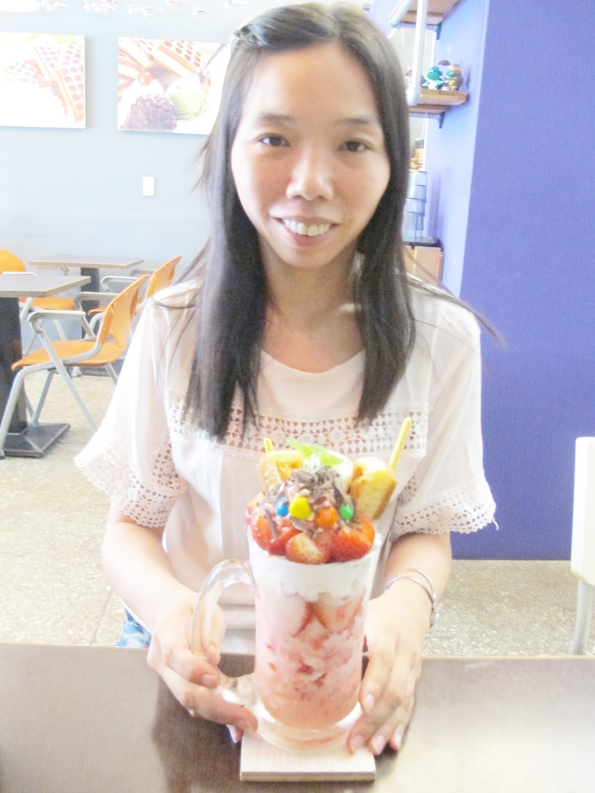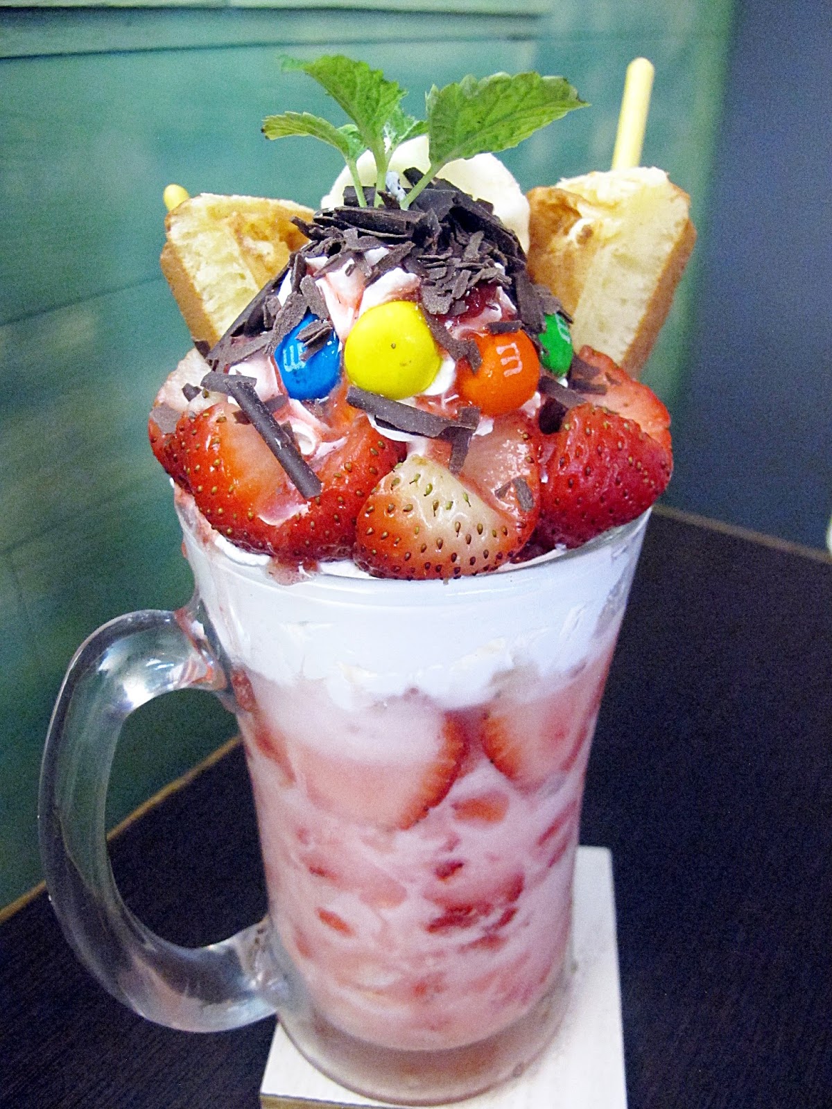 這杯裡有著滿滿草莓、巧克力、鬆餅真的是真材實料