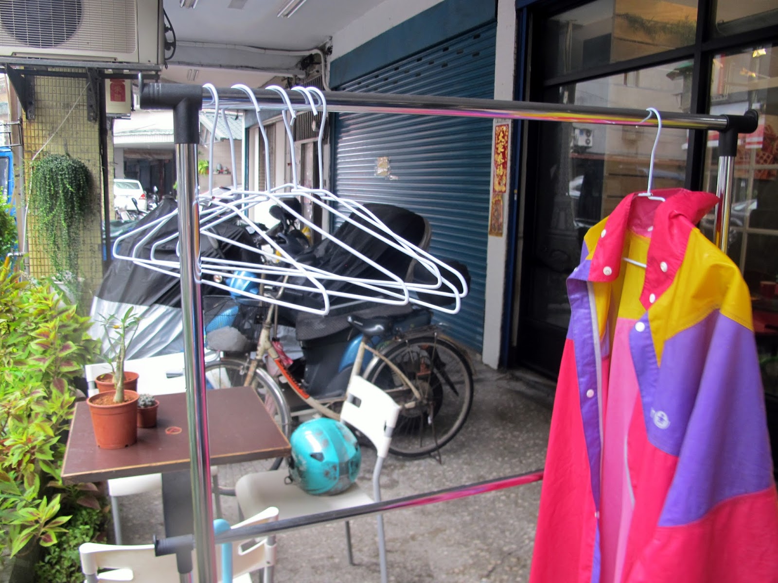 我們來的當天下大雨,店家貼心在門口擺放著曬衣架,方便讓我們把雨衣掛上晾乾