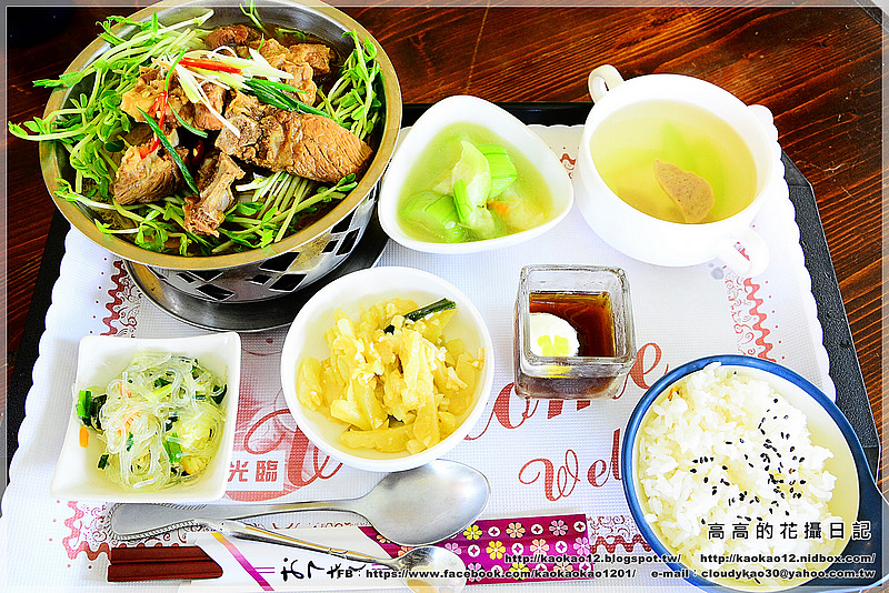 套餐除了主菜外,還有附三樣小菜、湯品、甜點及飲料。