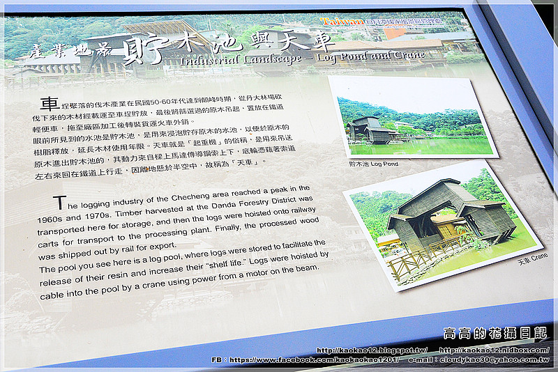 貯木池上有一座『天車』,天車就是起重機的俗稱,