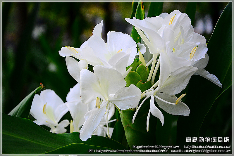 夏季的貯木池旁盛開了許多野薑花,潔白的身影點綴了池畔景色,