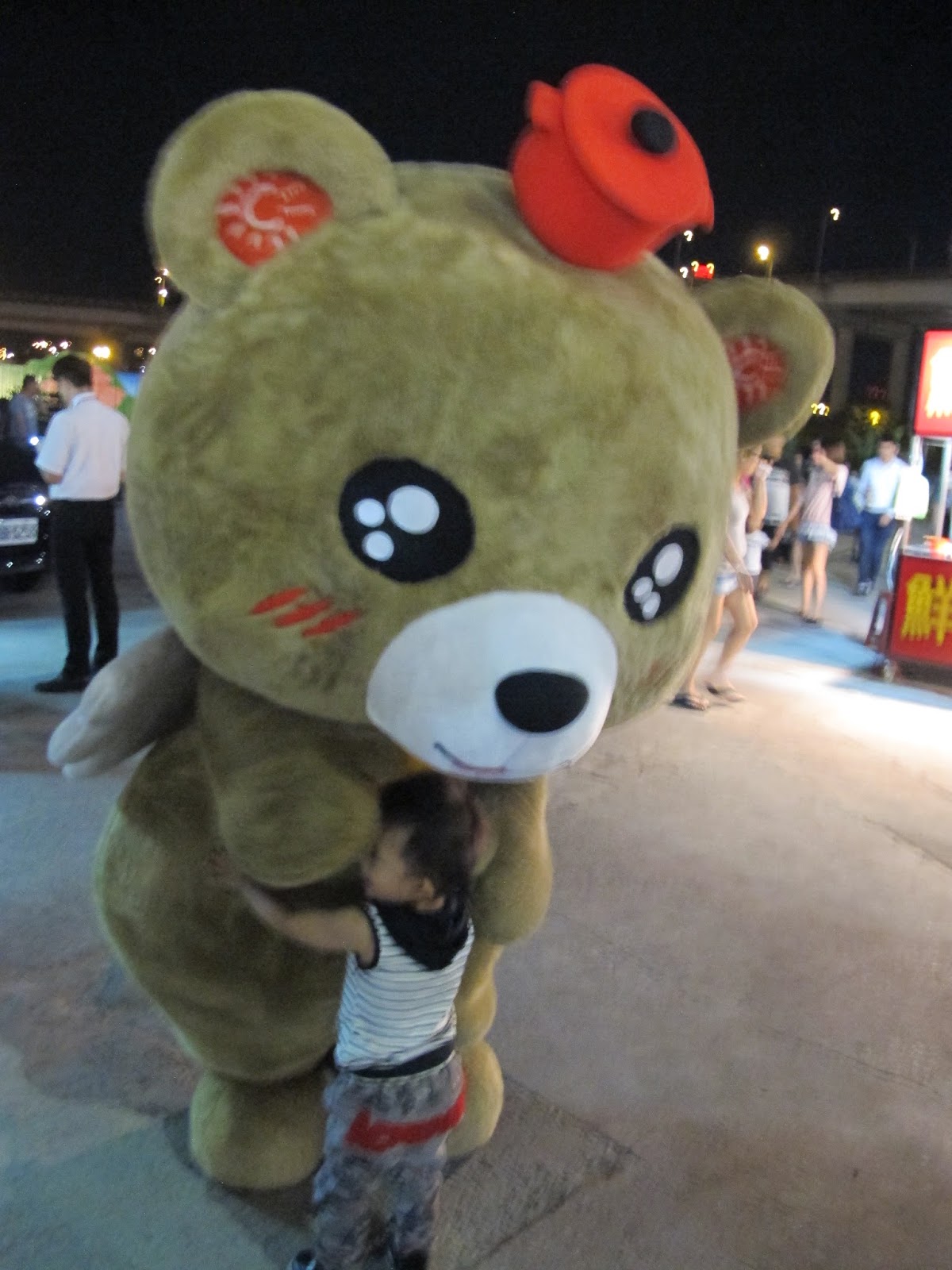 星光小熊超可愛,好多小朋友圍繞著他抱及拍照