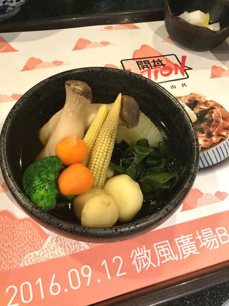清爽的各式野菜墩煮而成,有花椰菜、玉米筍、白蘿蔔、紅蘿蔔、海帶芽、杏鮑菇、荸薺