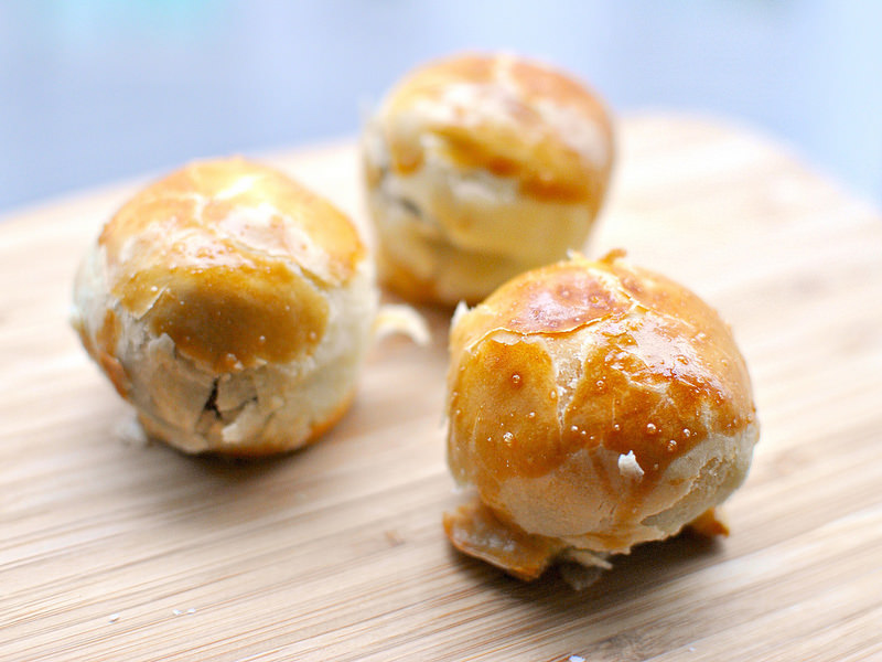 蛋黃酥並不是這款禮盒中唯一一款有著金黃色表皮的糕點,但流沙蛋黃酥表皮的蛋香特別濃郁