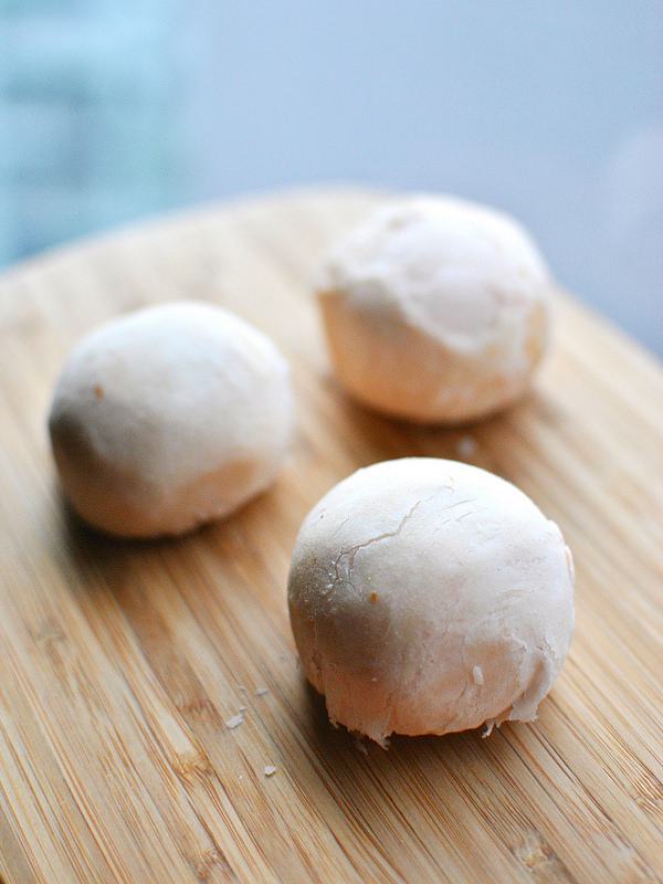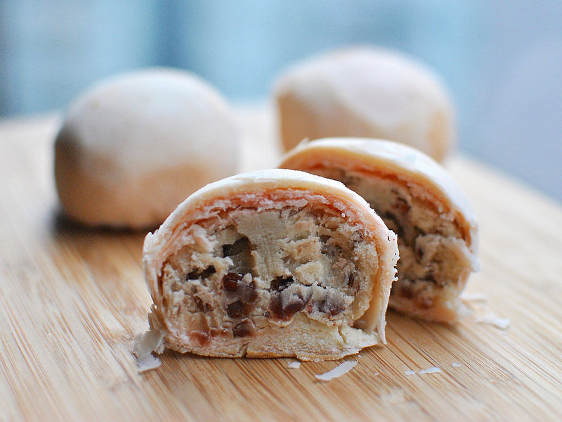 內餡是以白鳳豆為主體製成的白豆沙餡,摻入酸酸甜甜的蔓越莓乾,不會太突兀、每口都融合得很巧妙