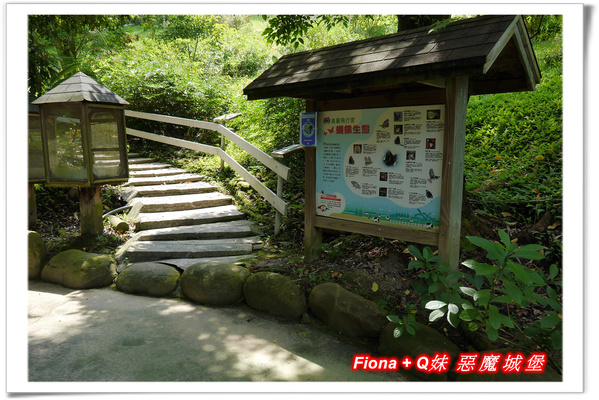 「蝴蝶生態區」的步道兩旁有蝴蝶品種介紹,走進裡頭應該可以看到更多美麗的蝴蝶,不過我們有點懶,所以就沒再爬上去了。