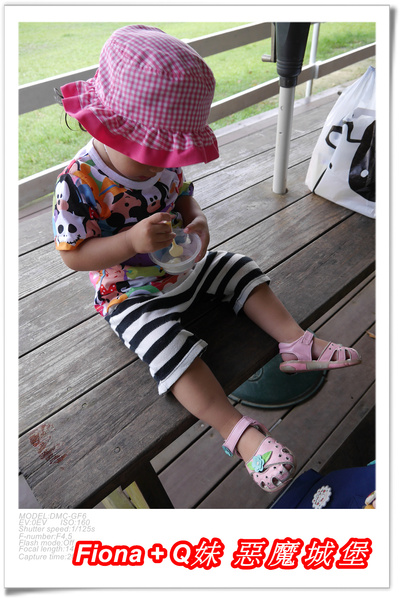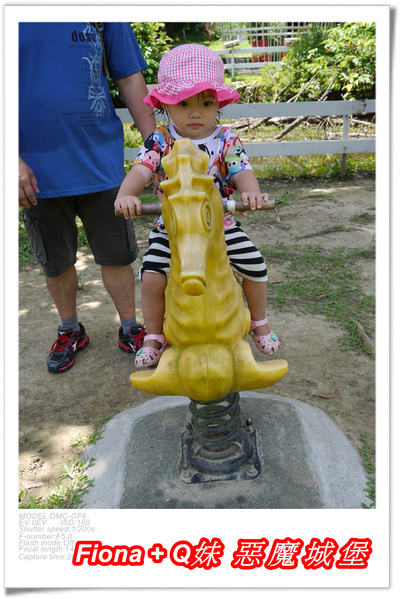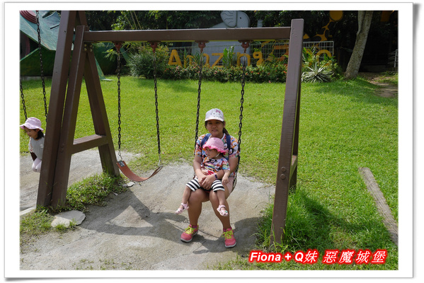 遊戲區有盪鞦韆、搖搖馬、翹翹板等,雖然挺熱的,姊妹倆還是忍不住在這小玩了一下,呵呵 !