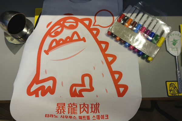 點完餐後就可以來設計自己專屬的圍兜兜~這暴龍長得好欠扁XD