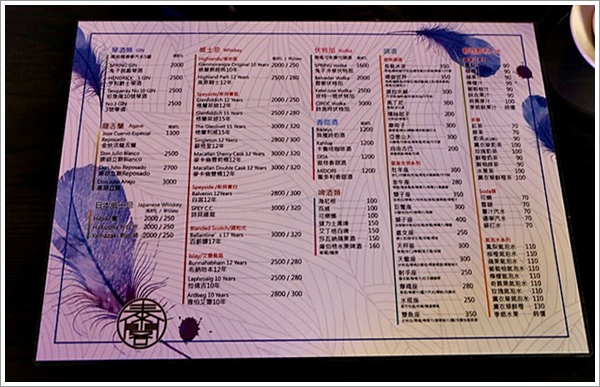 主餐的背面是各式酒類和調酒…不喝酒精類的人還有各式果汁、奶茶、汽水、氣泡水可做選擇…