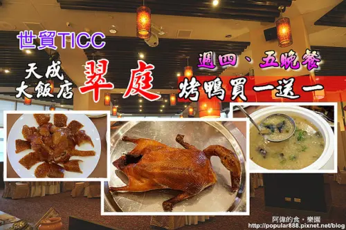 天成大飯店TICC世貿會館、翠庭中餐廳、櫻桃鴨、烤櫻桃鴨三吃、江浙料理、粵式港點、中式餐廳、台北信義區美食