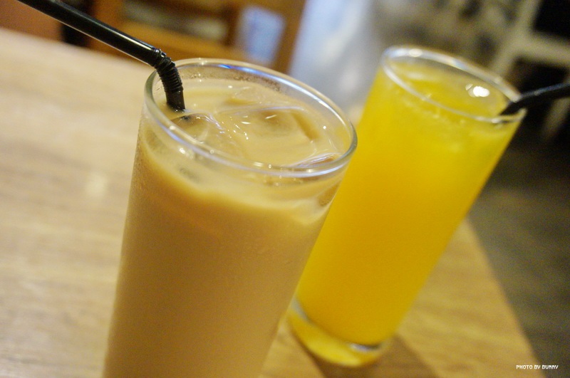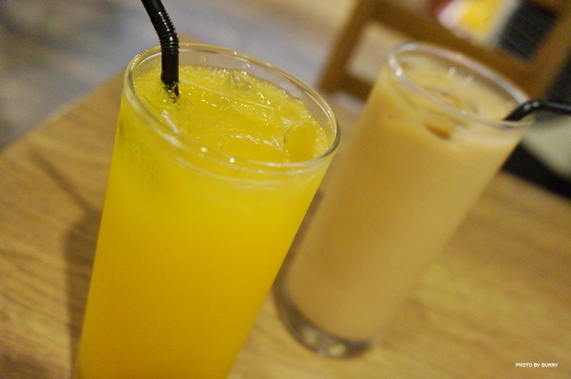 柳橙汁、阿薩姆奶茶