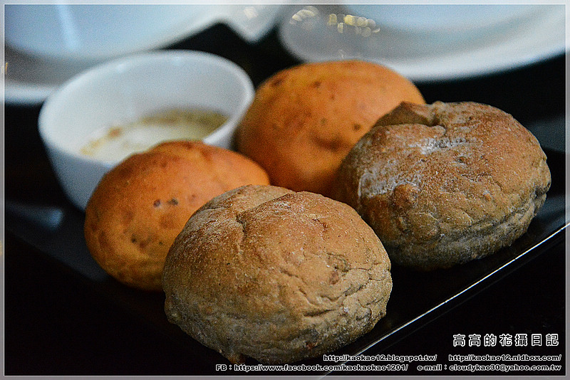 點完餐後沒等待太久,套餐的手工麵包和湯品就一起上桌了。