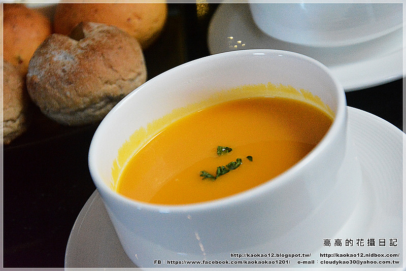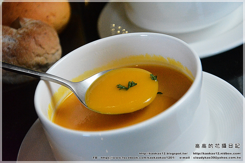 由於我們兩人都不太愛喝清湯,因此選擇了同樣的南瓜濃湯。