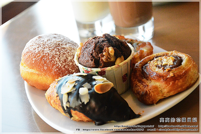 我拿的麵包(蛋糕)有巧克力牛角、肉桂捲、培根麵包等,