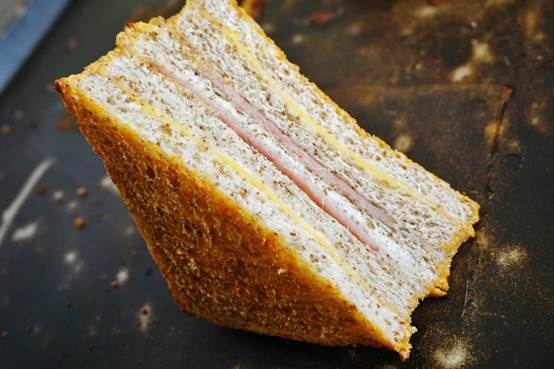 最愛插版介紹一款鹹的麵包,用全麥土司內夾火腿與起司,外層裹上特調醬汁去烘焙而成,是還沒出爐就會被訂光的一款麵包喔!