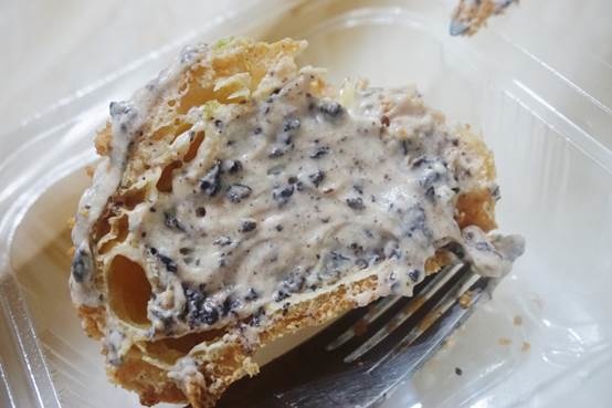 巧克力口味的泡芙不僅餡料豐富,還加入巧克力碎片,濃郁度up up~