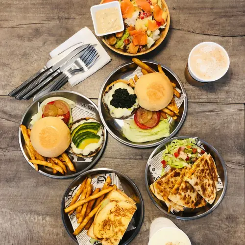 ▼菜單,平日中午(週二至週五12點~14點)點餐折扣50元,加購飲料再享半價優惠;其餘時段則是餐點加飲料可折抵50元,一整個超划算!他們的餐點選擇不少,像是飲品就有咖啡、奶昔、英國皇家泰勒茶、茶飲、歐蕾、鮮萃冰茶等,都可以任君挑選!