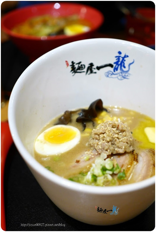 龍系列拉麵特色,主要是有一顆手工特製的絞肉丸,分別以顏色來區隔口味並搭配特製湯頭!!