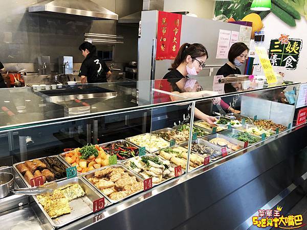 偌大的招牌寫著「三姨素食」~每次到了用餐時間都是很多人!