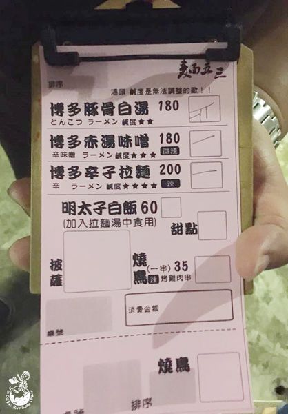 ▲麵的軟硬度和鹹度都是固定的,無法調整,師傅說曾有客人建議要為台灣人習慣的口味改良不要這麼鹹。但他認為他就是喜歡、想賣日本味的拉麵,要是為了迎合部分台灣人的嘴巴而調整,就不是原本的拉麵了,會變成自己也不知道在賣什麼拉麵,自己也不喜歡不能接受。結果客人居然說他們這樣不尊重消費者,不過師傅也只是笑笑說那就代表你沒有當我們客人的緣分了,他煮的拉麵是要賣給認同並接受麵五三理念的客人,不會為誰改變。