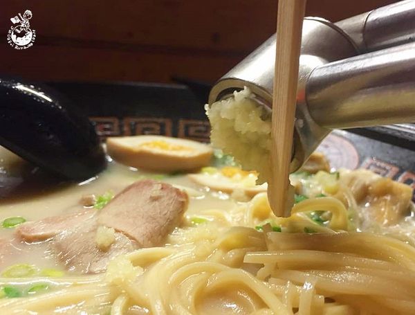 妹妹點了溫和的博多豚骨白湯拉麵,不太能吃鹹的師傅會比較建議點這碗,偏愛重口味的我喝了一口湯確實覺得實在不夠味,加了蒜泥後的湯頭才合我的味;叉燒頗很大一塊,吃起來偏嫩也不會柴柴的,麵條如果能再硬一點個人會比較喜歡