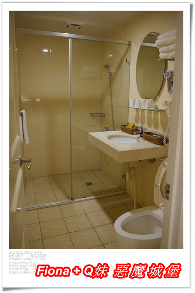 浴室部分採分離式,盥洗用具、洗髮精、沐浴乳、浴巾、毛巾、吹風機.....一應具全,最重要的是洗澡的時候熱水非常穩定,我很怕遇到那種忽冷忽熱的,那會搞得洗澡很忙哩 !