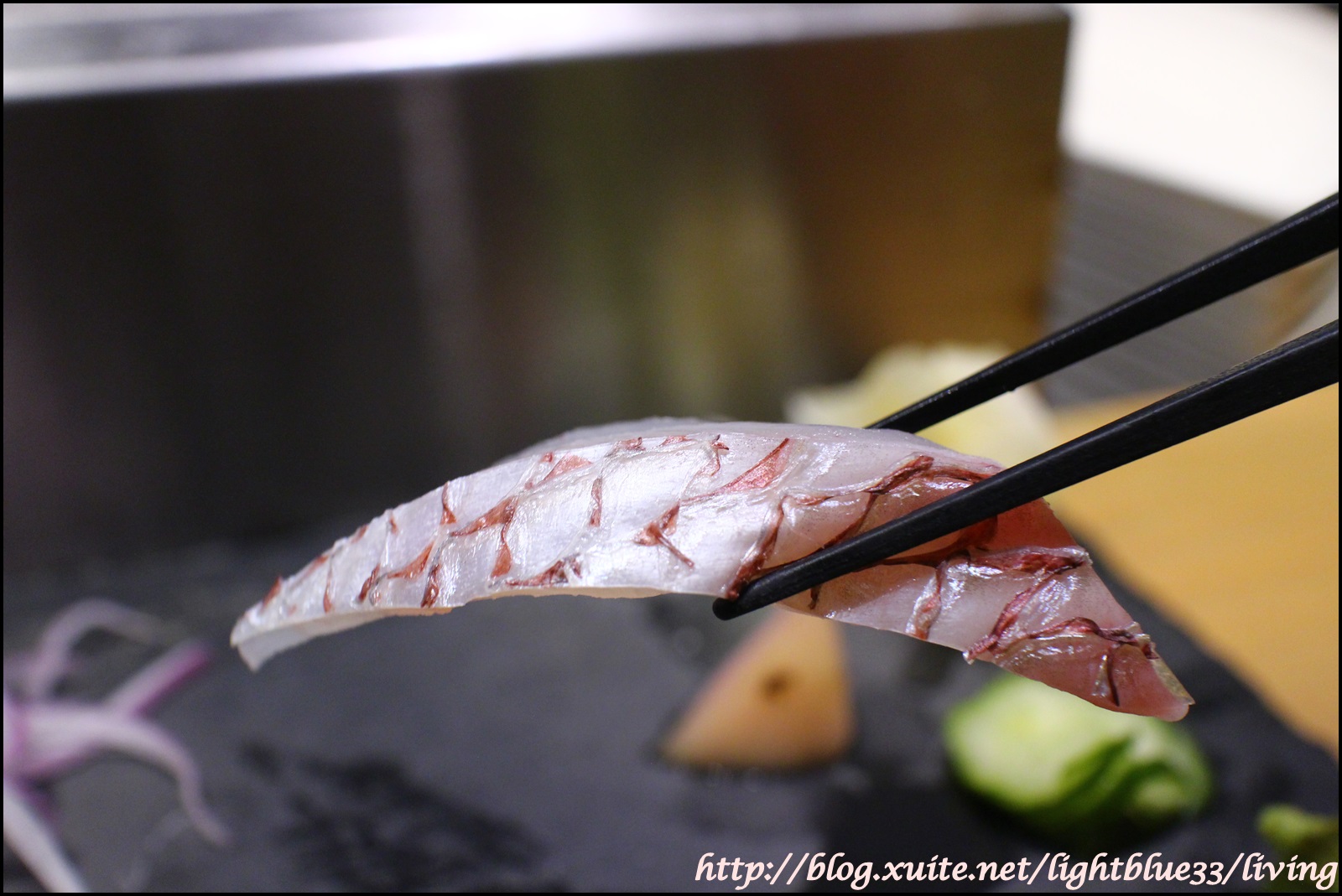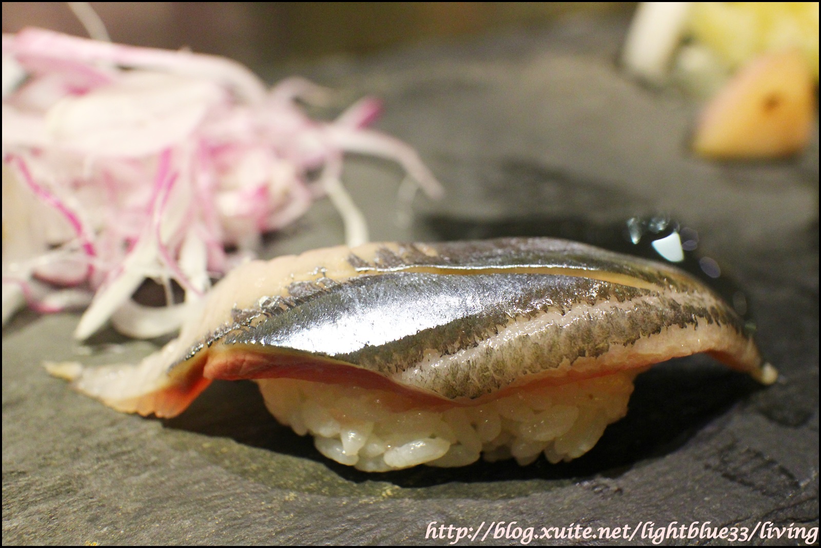 再來是季節性食材,是很少見的秋刀魚生魚片,這當然也是3000元套餐獨享^^一般而言,大家都只熟知烤秋刀魚,我都不知道還可以作成生魚片,師傅說這是由日本空運來台,因為這時節是秋刀魚的盛產季,只有新鮮秋刀魚才有辦法以生魚片方式呈現,一般冷凍秋刀魚就只能用烤的了,這就是大自然季節的恩典啊