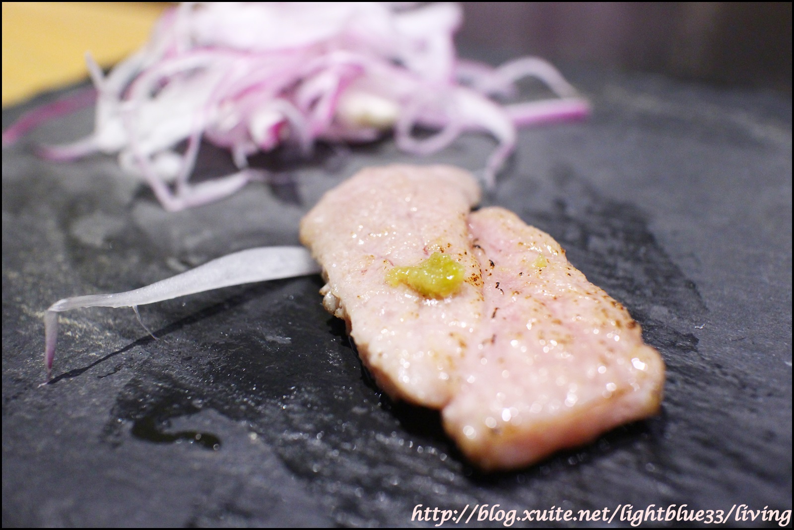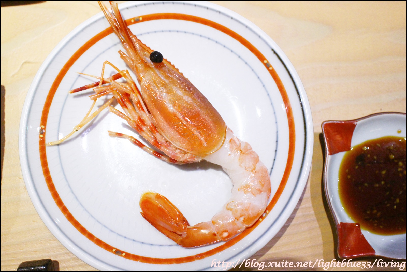這經過炙燒的是讓我覺得再多吃幾片都不夠的黑鮪魚,上頭有些許的柚子鹽,師傅提醒不必再沾其他調味料,直接入口感受黑鮪魚在口中化開的美好感動吧!尤其經過炙燒後,黑鮪魚的油脂更加迷人,雖然小小一塊,但卻是主角級的地位