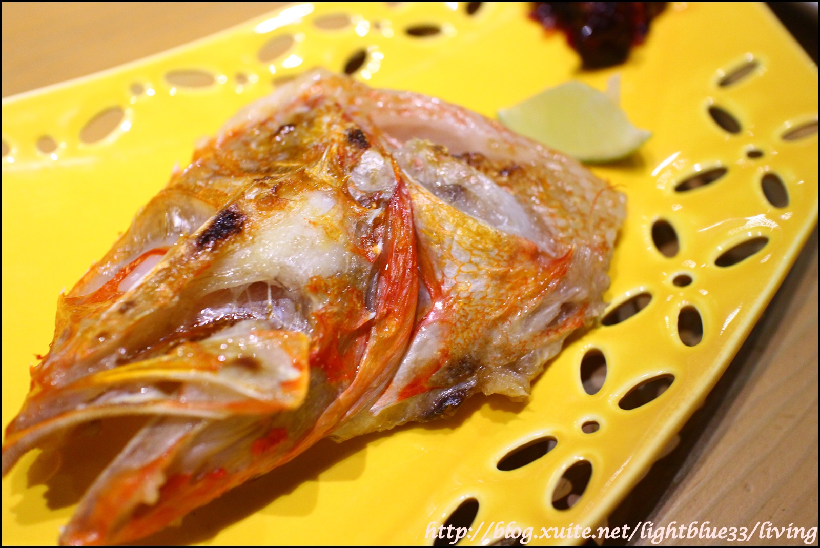 3000元菜單享用的是喜知次的烤魚頭,油脂明顯更鮮明濃郁,可以搭配旁邊的蔓越莓來解油膩,還要提醒大家喜知次的刺有點多要小心挑出來