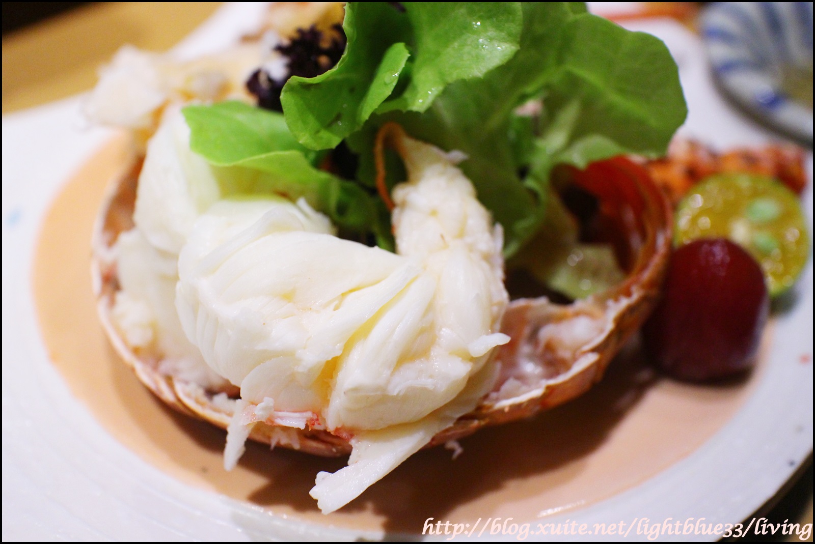 我就這樣一邊吃、一邊露出滿足的微笑,這麼單吃直到只剩下一塊龍蝦肉才發現有沾醬這回事XD 提醒大家記得要沾旁邊的沾醬,更有加分跟提味的作用喔!