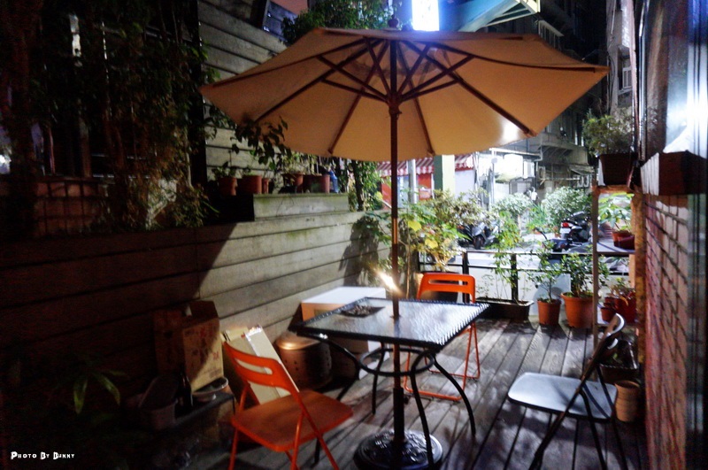在戶外小庭園造景的用餐區用餐也別有一番風味