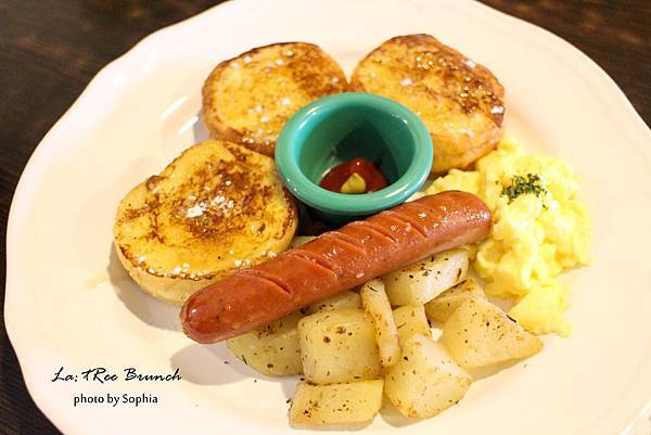蘇菲小姐套餐為法式吐司、馬鈴薯塊、美式滑蛋、和德式香腸