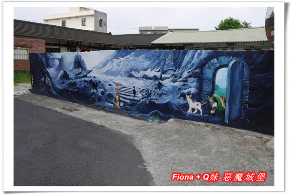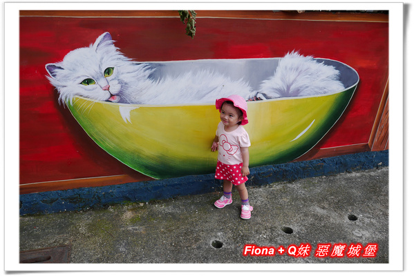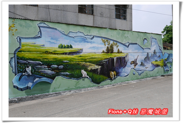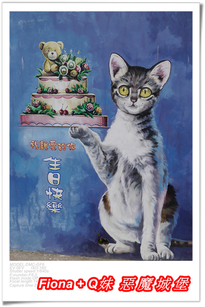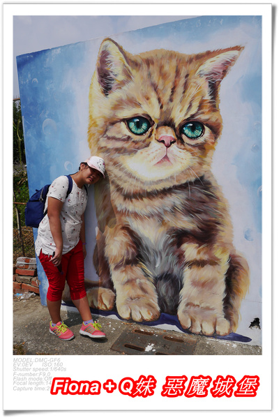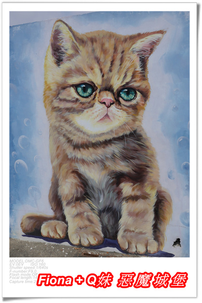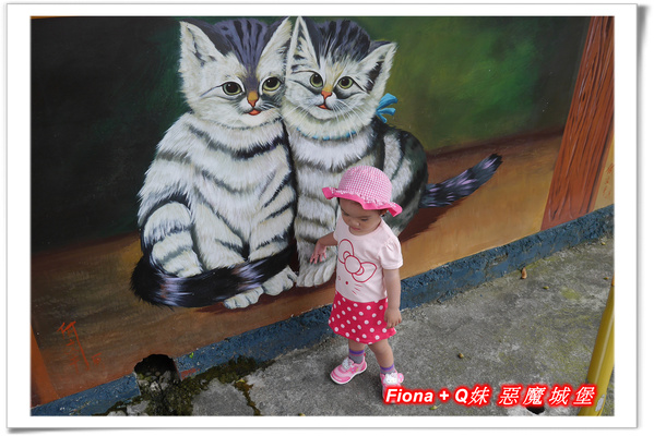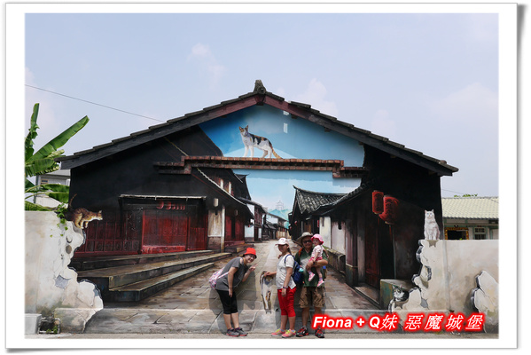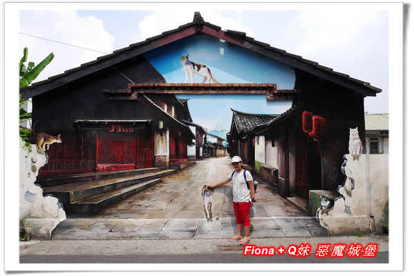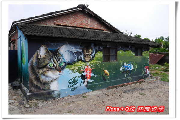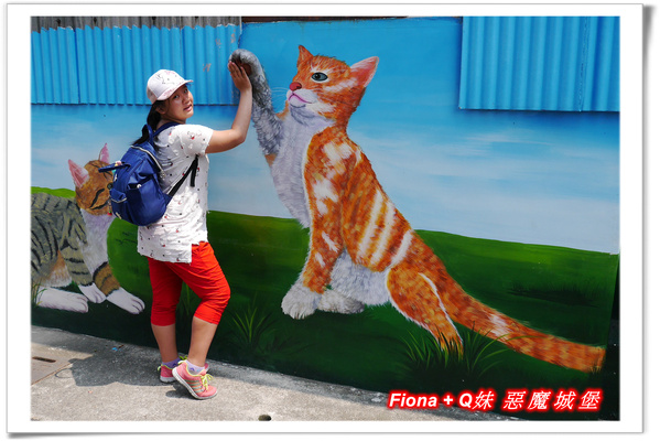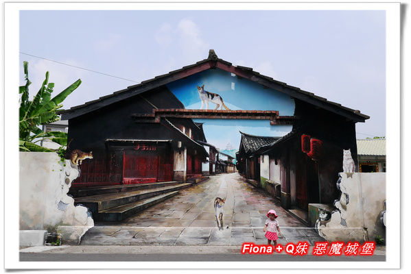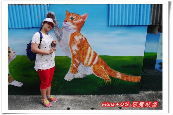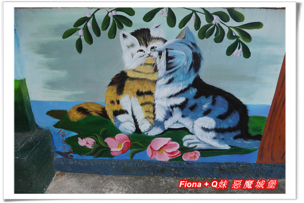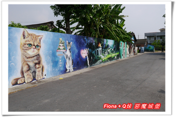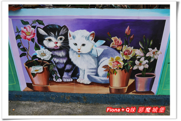 「菁埔社區貓世界」最吸睛的應該就是這面貓咪彩繪牆了,兩旁低矮的老舊房舍,中間延伸了一條石板路,路上沒有熙來攘往的人潮,只有一隻隻不同動作的逗趣小貓,真是貨真價實的貓世界,整幅畫超有立體感,拍起照來就彷彿正身歷其境一般的融合,好真實啊 !