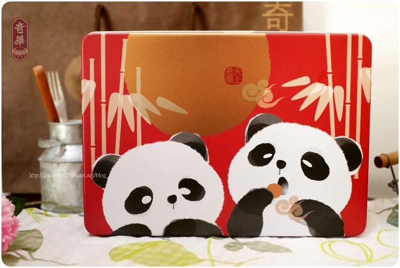 今(105)年新品 巧克力奶黃 口味,鎖定年輕族群加上熊貓圖樣鐵盒...
