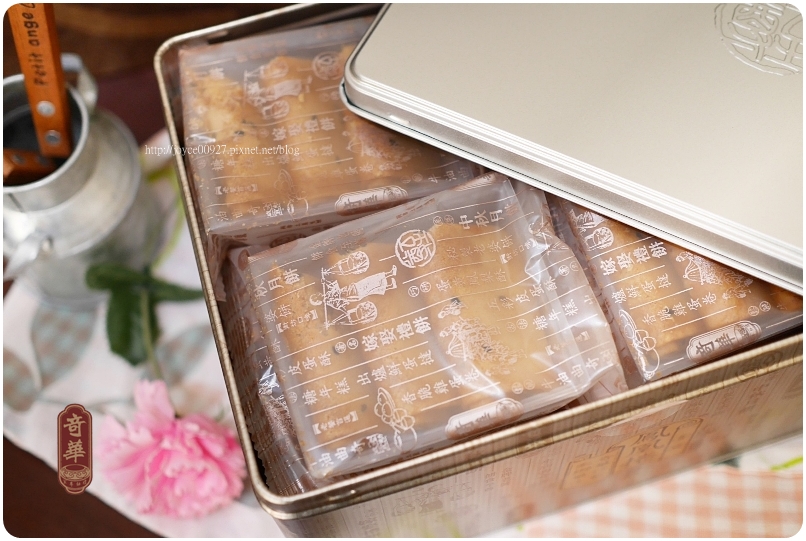 奇華肉鬆鳳凰蛋捲包裝採用經典設計的鐵盒