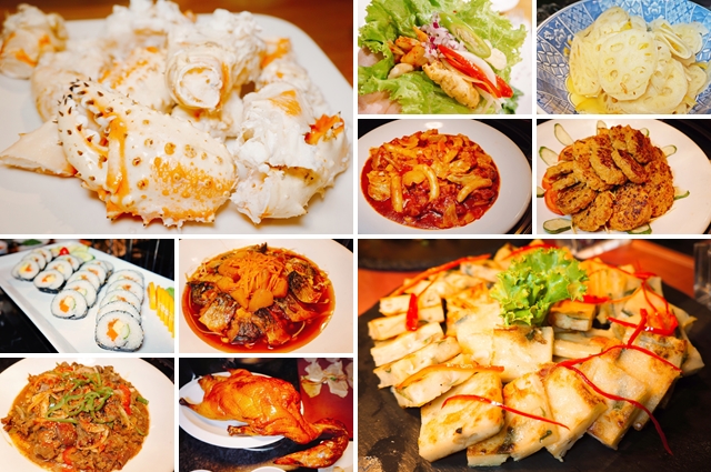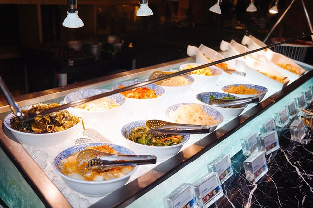 有韓式小菜區、沙拉區、海鮮料理區、日式料理區、西洋料理區、韓式料理區、