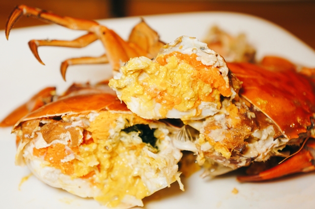 小紅蟳的好吃不只在於肉質的細嫩鮮甜,更在於裡面黃澄澄的香濃蟹膏跟蟹卵,